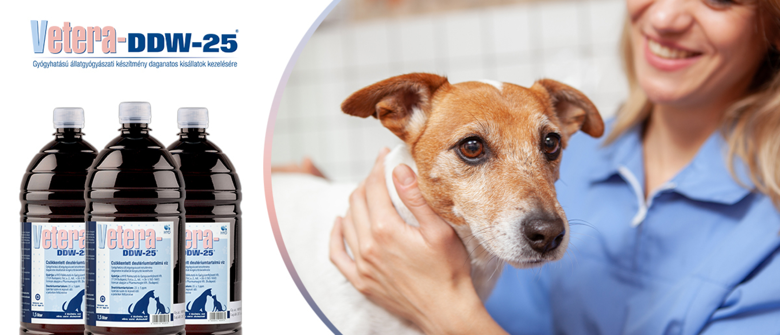 Het veterinaire antitumorpreparaat Vetera-DDW-25® is 's werelds eerste geneesmiddel met deuteriumarm water als werkzame stof en wordt toegepast als aanvullende behandeling bij kleine dieren met tumoren.